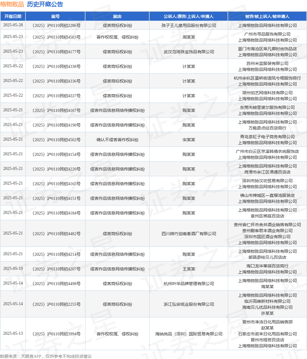 本站消息,根据天眼查APP显示,近日公布了一则上海格物致品网络科技有限公司作为被告/被上诉人的开庭公告,详细内容如下:
